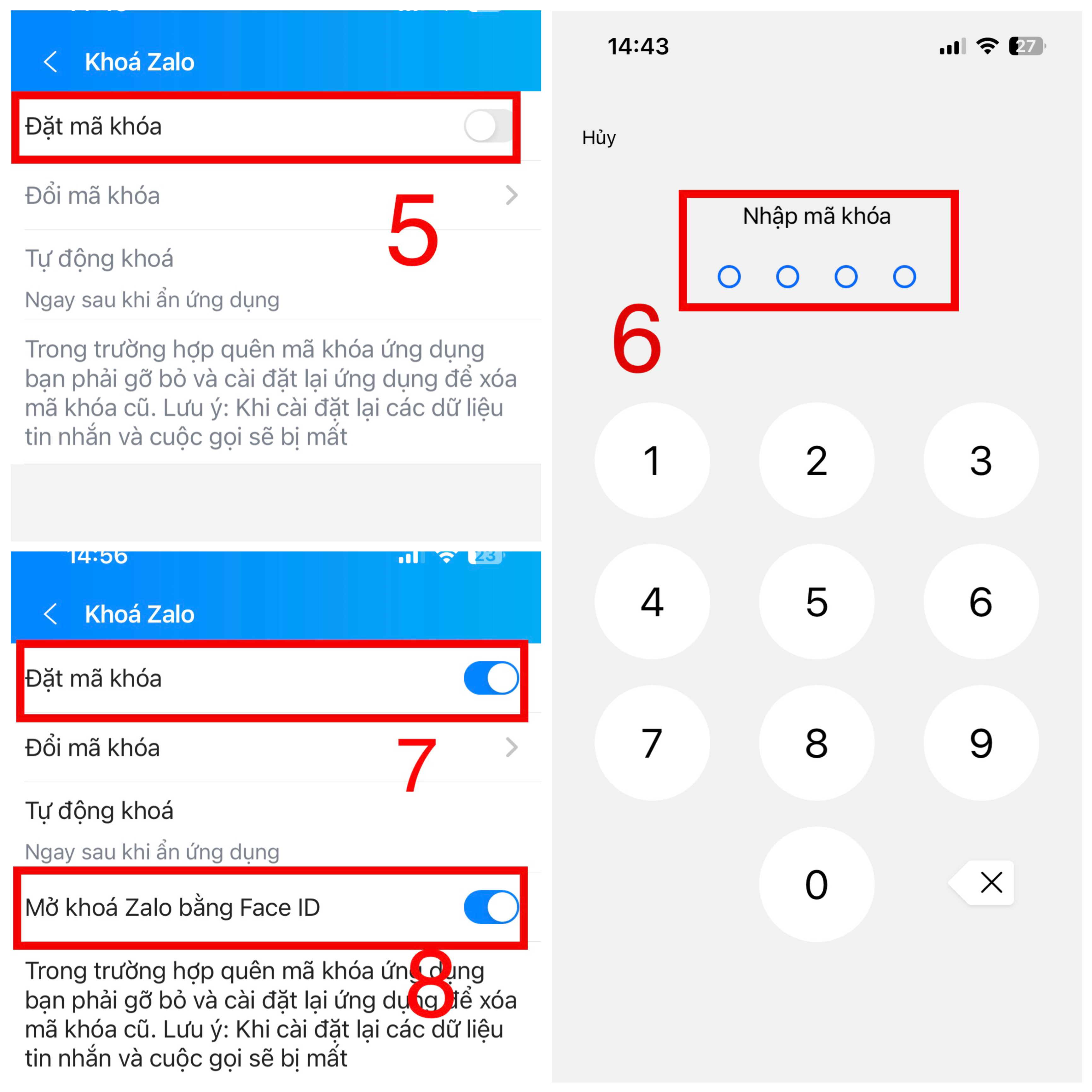 Bước 4: Chọn vào mục đặt mã khóa và Chọn mở khóa bằng Face ID với iPhone X trở lên ( iPhone 8 Plus trở xuống chọn mở khóa bằng Touch ID).