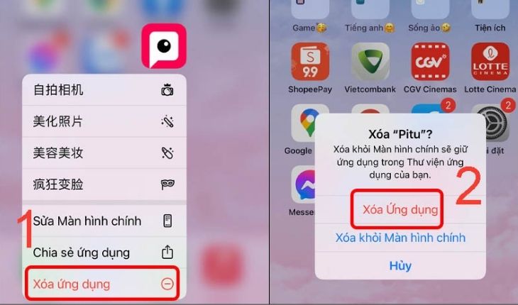 Bước 4: Sau khi đã chọn được ứng dụng cần ẩn bạn hãy quay lại màn hình chính của iPhone và xóa ứng dụng đó đi