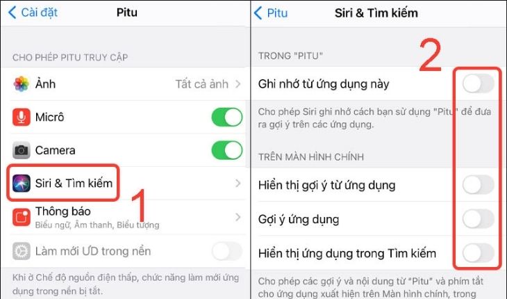 Bước 6: Tìm và nhấn vào Siri & Tìm kiếm => và chọn mục Tắt hiển thị toàn bộ