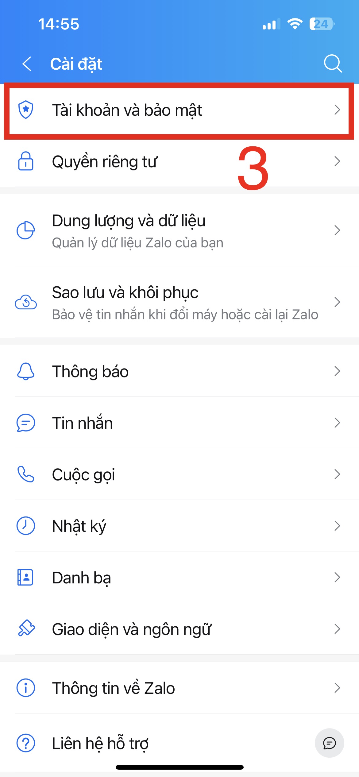 Bước 2: Tìm và nhấn vào mục Tài khoản và bảo mật