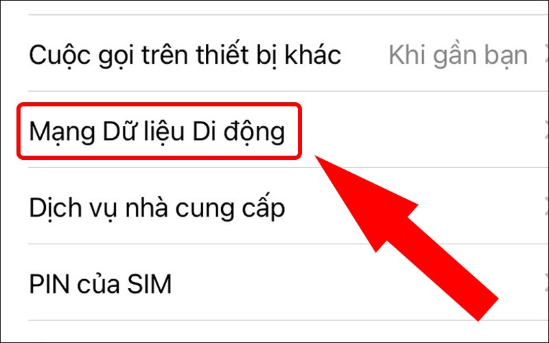 Bước 2: Tìm và chọn mục Mạng dữ liệu di động