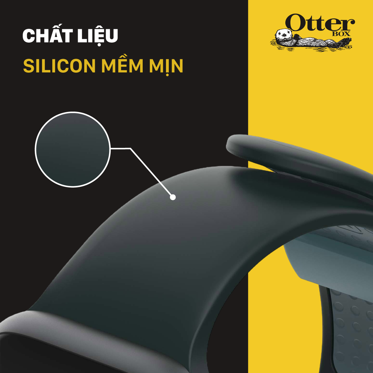 Dây đeo OtterBox được làm từ silicon cao cấp, mang đến cảm giác mềm mại và dễ chịu khi đeo trên cổ tay. Chất liệu này thân thiện với làn da, không gây kích ứng hay khó chịu ngay cả khi sử dụng lâu dài.