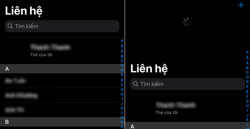 Bước 5: Sau khi mở ứng dụng Danh bạ và bạn hãy làm thao tác vuốt xuống để làm mới. Vài giây sau trong phần danh bạ từ iPhone cũ sẽ xuất hiện trên iPhone mới.