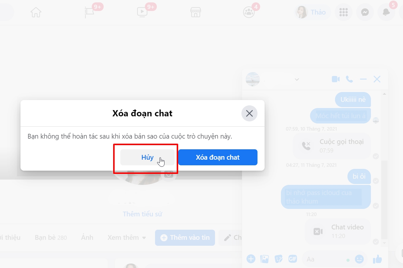 Lưu ý: Trong trường hợp không thể khôi phục tin nhắn đã xóa trên Facebook lý do là bạn đã xóa trực tiếp tại phần tin nhắn bao gồm 2 lựa chọn là Xóa cuộc trò chuyện và Xóa tin nhắn.