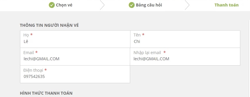 Hãy chú ý đến phần phương thức thanh toán.