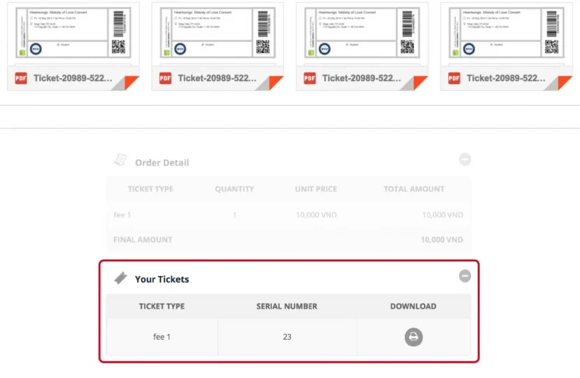 Bước 8:Ticketbox sẽ gửi vé đến bạn sau khi đặt vé theo cách sau: