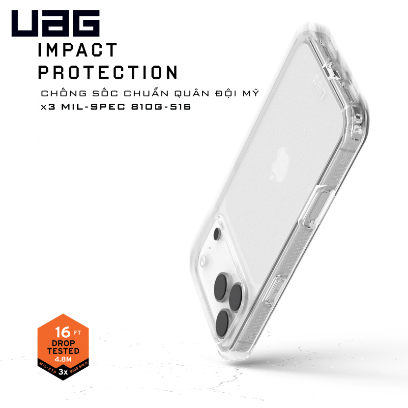 Plyo được chứng nhận 3X MIL-SPEC 810G-516.6, với khả năng chống sốc lên đến 4,9 mét. Nhờ công nghệ bo góc đệm khí air-soft, lực va chạm được hấp thụ và phân tán tối đa, đảm bảo iPhone của bạn luôn an toàn trước những cú rơi ngoài ý muốn.