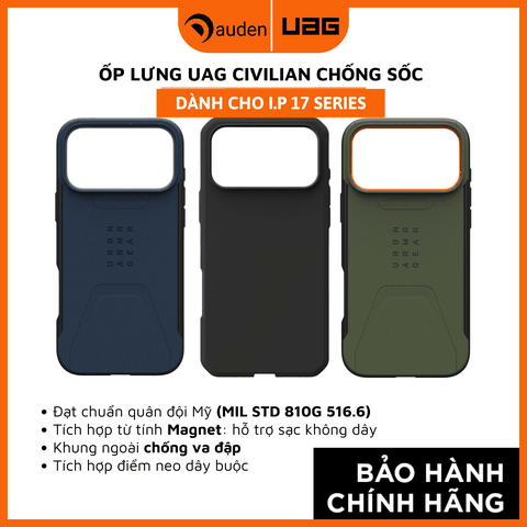 Nếu bạn đang tìm một chiếc ốp vừa bảo vệ tối đa vừa giữ sự thoải mái khi sử dụng, thì UAG Civilian cho iPhone 17 Series chính là lựa chọn hoàn hảo. Với công nghệ chống sốc tiên tiến, cấu trúc ép khuôn 3 lớp cùng khả năng tương thích MagSafe, Civilian mang đến sự an toàn tuyệt đối và trải nghiệm sử dụng mượt mà trong từng khoảnh khắc.