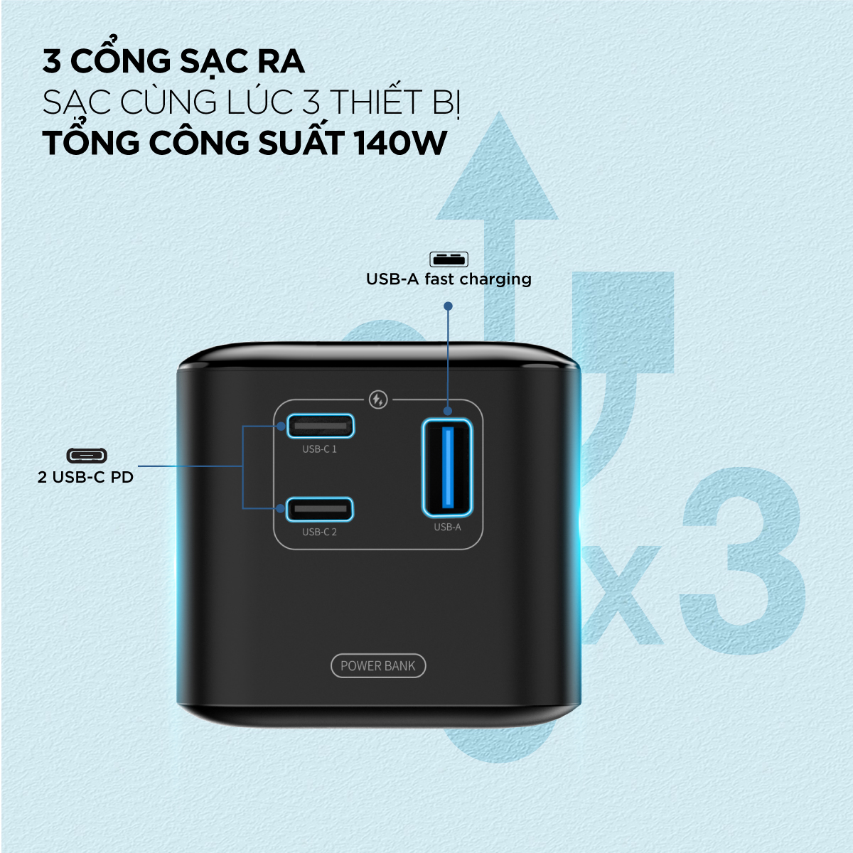 3. Ba cổng sạc ra – Linh hoạt kết nối, tối ưu hiệu suất