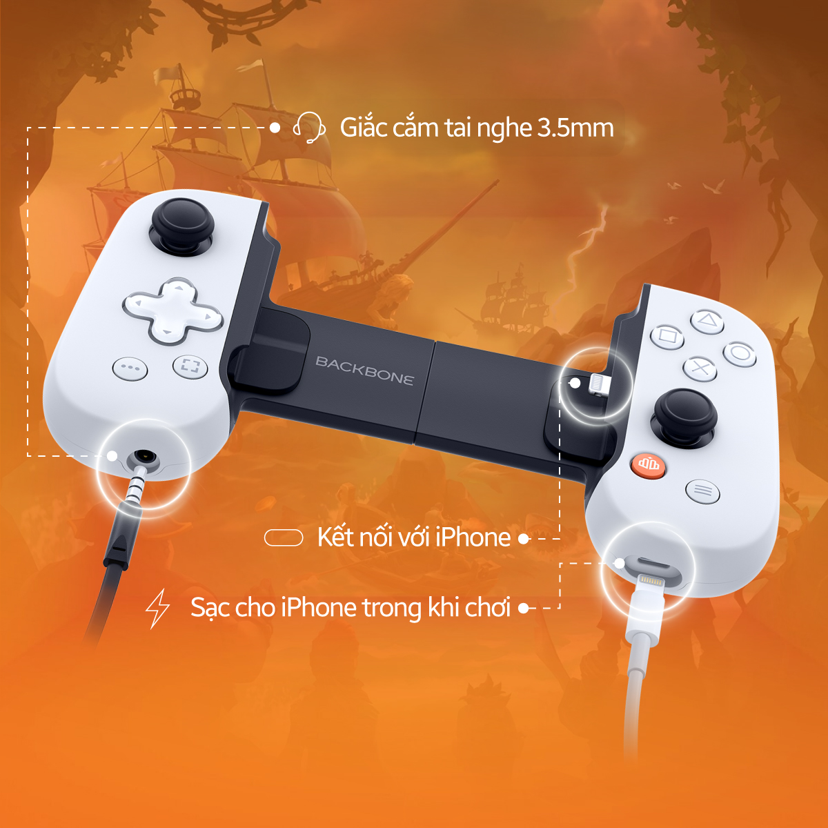 Backbone One được tích hợp jack cắm tai nghe 3.5mm có hỗ trợ micro, cho phép bạn trò chuyện dễ dàng cùng đồng đội khi chơi game online, mà không cần đến tai nghe Bluetooth hay phụ kiện rườm rà. Đây là tính năng rất tiện lợi cho các tựa game chiến thuật hoặc đấu đội như PUBG Mobile, Call of Duty Mobile, hoặc các game Xbox qua Cloud.