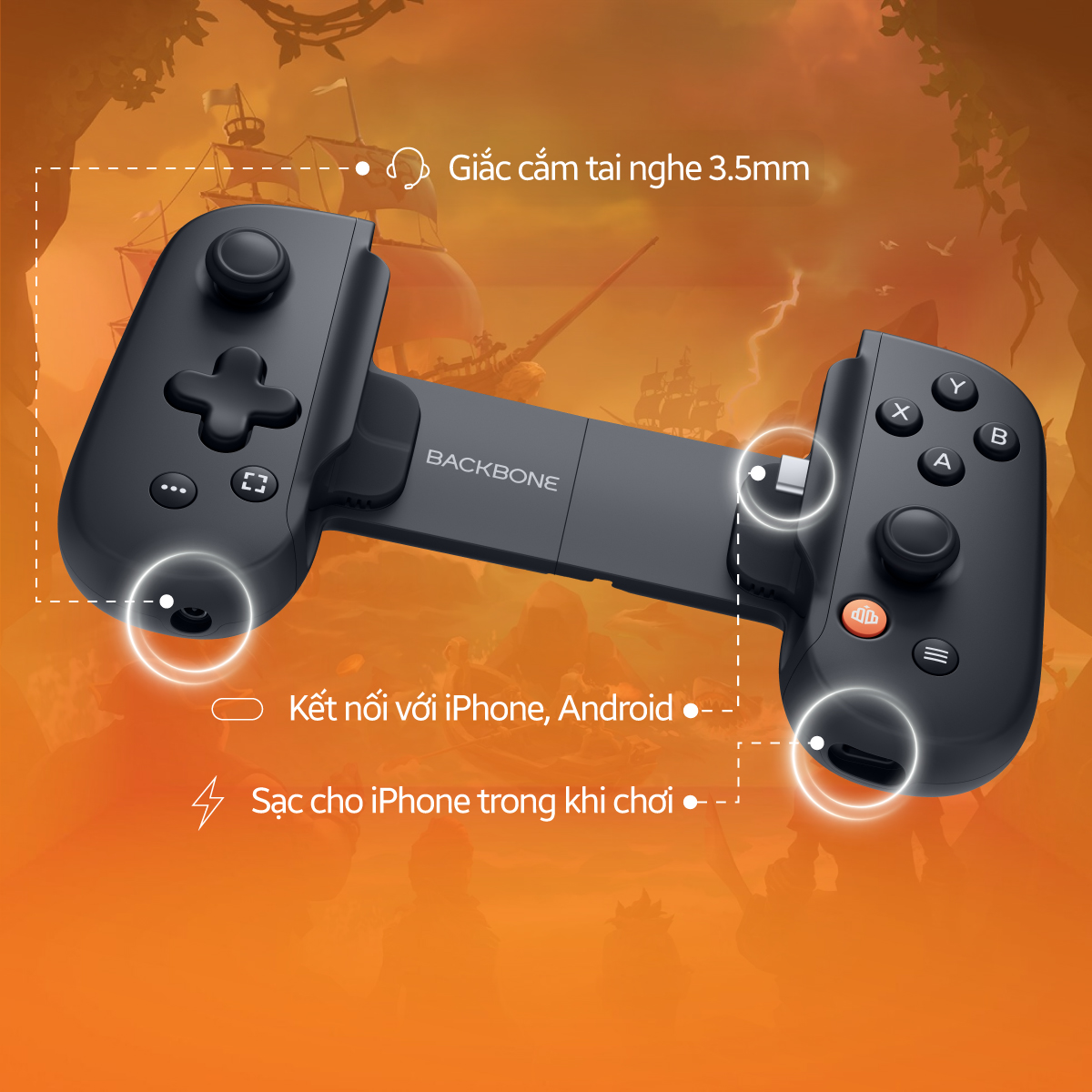 Backbone One được tích hợp jack cắm tai nghe 3.5mm có hỗ trợ micro, cho phép bạn trò chuyện dễ dàng cùng đồng đội khi chơi game online, mà không cần đến tai nghe Bluetooth hay phụ kiện rườm rà. Đây là tính năng rất tiện lợi cho các tựa game chiến thuật hoặc đấu đội như PUBG Mobile, Call of Duty Mobile, hoặc các game Xbox qua Cloud.