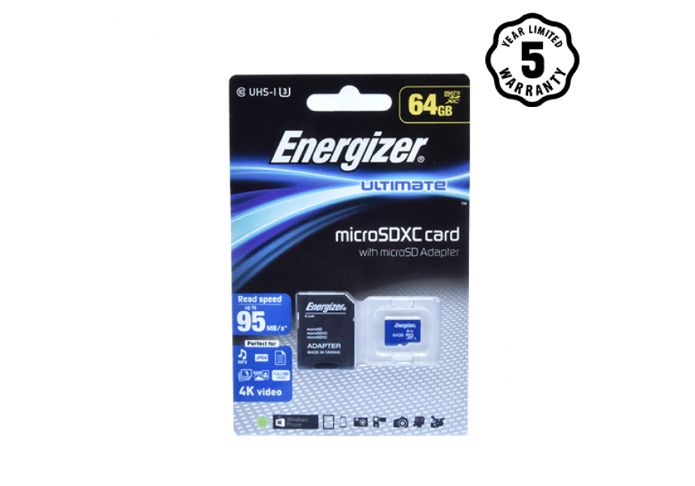 - Được sản xuất theo công nghệ cao và tiêu chuẩn châu Âu kèm với chính sách bảo hành chính hãng 1 ĐỔI 1 trọn đời Thẻ nhớ Micro mang thương hiệu Energizer là một sản phẩm đáng tin cậy cho người tiêu dùng