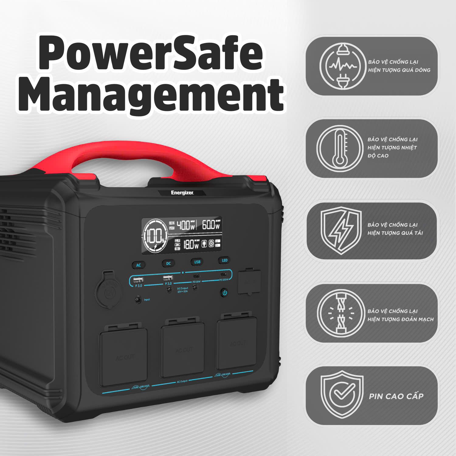 Tích hợp PowerSafe Management, trạm sạc di động Energizer giúp bảo vệ trạm và thiết bị của bạn khỏi: