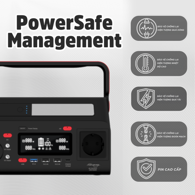 Trạm sạc dự phòng di động Energizer 293Wh|300W Li-ion - PPS300W2 tích hợp PowerSafe Management, hỗ trợ chống hiện tượng đoản mạch quá dòng, quá sạc và quá tải cho nguồn điện và các thiết bị.